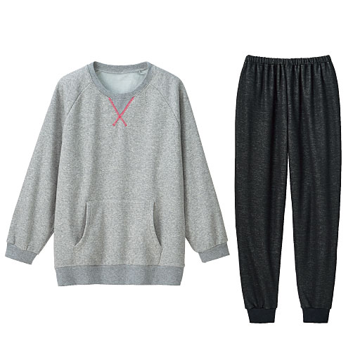 【ご注文が初めての方or5,000円(税別)以上のご注文で送料無料】ふわっとした肌ざわりで、着た瞬間から暖かな裏起毛素材を使用。無地にステッチを効かせ、ちょいメンズライクに仕上げました☆肌ざわりのよいふわふわ裏起毛はずっと着ていたい肌触り。かぶるだけのTタイプで、パンツは裾リブタイプだから動きやすく、パジャマはもちろん、ルームウェアとしてもうれしい着心地だよ。カンガルーポケットがついていて、デザインポイントになっています。ポケットの中もふわふわの触り心地なのがうれしい。 ■カラー:グレー ■サイズ:S,LL