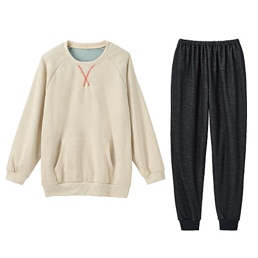 【ご注文が初めての方or5,000円(税別)以上のご注文で送料無料】ふわっとした肌ざわりで、着た瞬間から暖かな裏起毛素材を使用。無地にステッチを効かせ、ちょいメンズライクに仕上げました☆肌ざわりのよいふわふわ裏起毛はずっと着ていたい肌触り。かぶるだけのTタイプで、パンツは裾リブタイプだから動きやすく、パジャマはもちろん、ルームウェアとしてもうれしい着心地だよ。カンガルーポケットがついていて、デザインポイントになっています。ポケットの中もふわふわの触り心地なのがうれしい。 ■カラー:オートミール ■サイズ:LL,S,L