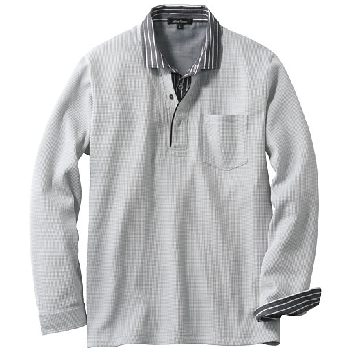 【ご注文が初めての方or5,000円(税別)以上のご注文で送料無料】カットソーの下にシャツを着ているような、きちんと感のある着こなしが1枚で完成するレイヤードデザインのカットソー。ストライプのシャツをのぞかせているような衿元デザインがポイント。シャツ衿部分をコンパクトにインして、違った表情で着こなしてもグッドです。カフス裏にも同じシャツ地を施しているから、袖を折り上げた着こなしもバッチリ。きちんとした着こなしがさらりと決まる、大人の技ありアイテムです。 ■カラー:グレー系 ■サイズ:L,7L,S,M,3L,5L,LL