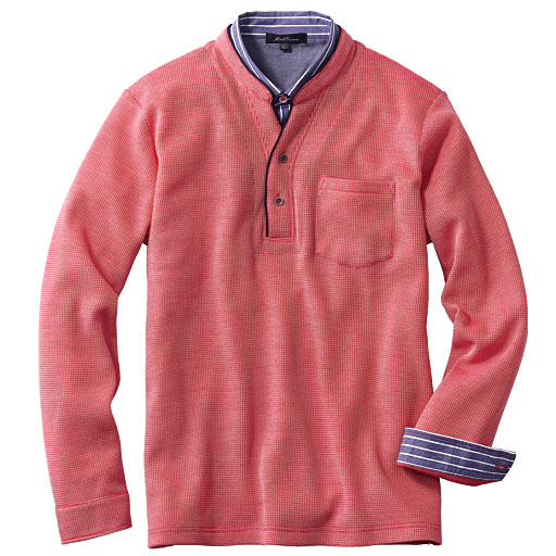 【ご注文が初めての方or5,000円(税別)以上のご注文で送料無料】カットソーの下にシャツを着ているような、きちんと感のある着こなしが1枚で完成するレイヤードデザインのカットソー。ストライプのシャツをのぞかせているような衿元デザインがポイント。シャツ衿部分をコンパクトにインして、違った表情で着こなしてもグッドです。カフス裏にも同じシャツ地を施しているから、袖を折り上げた着こなしもバッチリ。きちんとした着こなしがさらりと決まる、大人の技ありアイテムです。 ■カラー:レッド系 ■サイズ:S,5L
