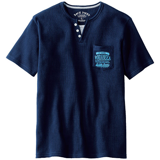 注目のグッズがお手ごろに購入できる情報です。     【ご注文が初めての方or5,000円(税別)以上のご注文で送料無料】凹凸のある表面感で肌触りが心地よいワッフル素材のTシャツに、無地Tシャツをインしたようなレイヤード風のデザイン。一枚でこなれた着こなしが叶うから、コーディネートが楽ちん!胸のポケットがおしゃれなアクセント。すべて綿100%だからロングシーズン快適に着られます。 ■カラー:ネイビー ■サイズ:M,L,LL,S