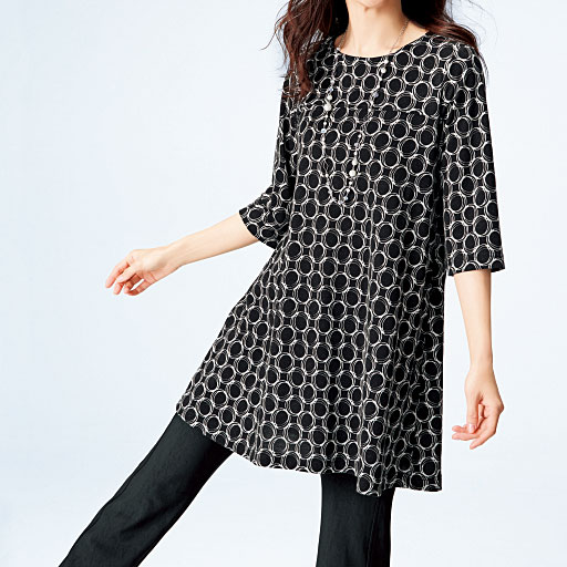 注目のグッズがお手ごろに購入できる情報です。     【ご注文が初めての方or5,000円(税別)以上のご注文で送料無料】ニュアンスのある柄で、ふわりと女性らしく着こなせるロング丈チュニック。ゆったりフレアに7分袖で二の腕も気になりません。 ■カラー:A ■サイズ:3L