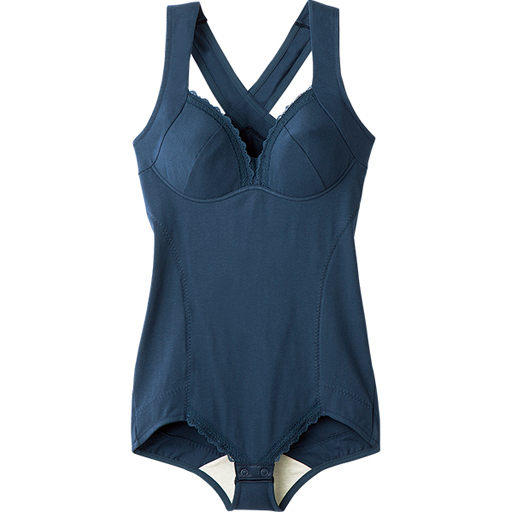 【ご注文が初めての方or5,000円(税別)以上のご注文で送料無料】伸縮性があり着心地の良い綿混素材を使用。綿の混合率が95%で爽やかな着用感と優しい肌触り。背中はバッククロス仕様でシャキッと美姿勢を作ります。ストラップのズレ落ちもなく安定した着用感です。姿勢が良くなる事でバストトップの位置も自然に高くなります。タンクトップ感覚のストラップで肩がラク、見えても安心。コットンのやさしい肌ざわりとノンワイヤー、ホックなしの心地よさで毎日着たくなる。下から履くことでバストメイク力アップ。カップ裏は綿100%でやさしくフィット。気になる下半身をサポートするオールインワンタイプ登場! ■カラー:ネイビー ■サイズ:M,LL,L,3L