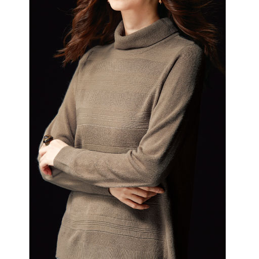【ご注文が初めての方or5,000円(税別)以上のご注文で送料無料】繊維の間に空気をたっぷり含んでいるから、ふわっと軽くてあたたか。しっかり肉厚で、包み込まれるような着心地が楽しめます。ご家庭で気軽に洗えるので、毎日の着まわしに大活躍!フロントに柄編みを施した、後身が長めのタートルネックニットです。 ■カラー:モカ ■サイズ:L,3L,M,S,LL