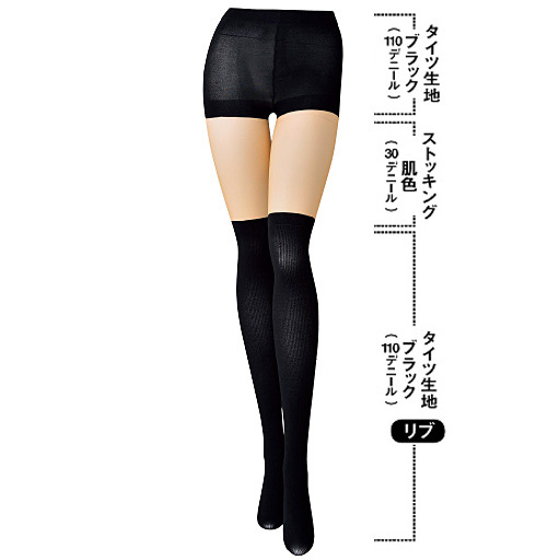 【ご注文が初めての方or5,000円(税別)以上のご注文で送料無料】重ねばきに見えて、実はこれ1枚なんです。1枚つながりだから、足口がめくれない&くい込まない!ズレ落ちない!1枚でスッキリ決まるニーハイフェイクタイツです。30デニールの肌色タイツと110デニールのショーツ部&ニーハイ部を合体させました。ニーハイ部はリブ編でよりリアルな印象に。ショーツ部もブラックだから、スパッツをはいているような安心感があります。この1枚でおしゃれ脚の完成! ■カラー:ブラック ■サイズ:M-L,L-LL