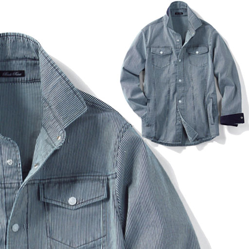 注目のグッズがお手ごろに購入できる情報です。     【送料無料】シャツとしてもアウターとしても使える、使い勝手の良いストレッチシャツジャケット。両サイドに胸ポケット&腰ポケットを施したデザインだから収納力が高く、ちょっとしたおでかけならバッグ要らずなのが◎。コーディネートしやすいシンプルデザインに、衿や袖口の配色使い、かすれ加工を施したメタルボタンなど、おしゃれなアクセントが効いています。タフな外観でありながらもストレッチ素材を使用しているから着心地が良く、洗濯機で洗えるのもうれしいポイントです。 ■カラー:ストライプ ■サイズ:5L