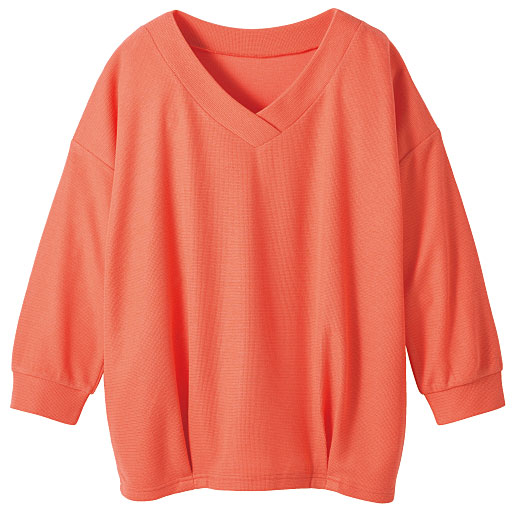 注目のグッズがお手ごろに購入できる情報です。     【ご注文が初めての方or5,000円(税別)以上のご注文で送料無料】デコルテをキレイに演出する、ほどよい開き具合の7分袖Vネックプルオーバー。表面に凹凸感のあるカットソー素材。 ■カラー:キャロットオレンジ ■サイズ:LL,S,L,M,3L