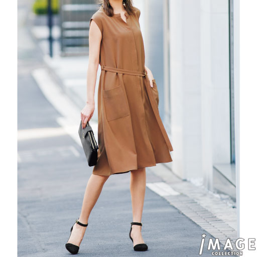 注目のグッズがお手ごろに購入できる情報です。     【ご注文が初めての方or5,000円(税別)以上のご注文で送料無料】着こなしの幅がグッと広がる!2WAYジレワンピ。前を閉じて一枚でワンピとして、前を開けてロングジレとしても羽織れる、晩夏から大活躍の2WAYアイテム。スマートな比翼ボタンや肩が出すぎないノースリーブデザインで、きちんと見えるデザインも◎。共地のDカンベルトでウエストマークをすれば女らしさもアップ。 ■カラー:レンガ ■サイズ:11号,15号,5号(プチサイズ),9号,13号,7号