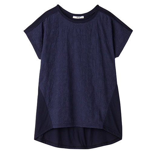 注目のグッズがお手ごろに購入できる情報です。     【ご注文が初めての方or5,000円(税別)以上のご注文で送料無料】前身頃に花柄刺しゅうを施したチュニックカットソー。後身頃が長いデザインで、パンツスタイルのヒップをさり気なくカバー。 ■カラー:ネイビー ■サイズ:M,LL,L