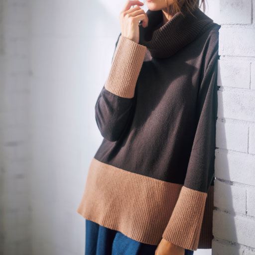 【ご注文が初めての方or5,000円(税別)以上のご注文で送料無料】ご家庭の洗濯機で洗える、ウール100%のカットソー。首元をスッキリ見せるハイネックは、1枚でも重ね着でも使えるベーシックなシルエットです。あったかなのにすっきり、贅沢な普段着ウールです。 ■カラー:グレイッシュブラウン ■サイズ:3L,LL,L