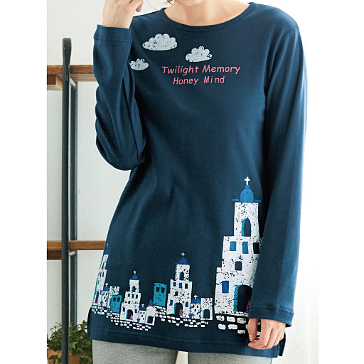 注目のグッズがお手ごろに購入できる情報です。     【ご注文が初めての方or5,000円(税別)以上のご注文で送料無料】シーズン問わず年中活躍できる、綿100%スムース素材のTシャツです。物語を感じさせる可愛いプリント柄がポイント。おなかからお尻のあたりまでカバーする人気のセミロング丈で、体型を拾いにくい楽なシルエットだから普段着にぴったりです。 ■カラー:ネイビーブルー ■サイズ:3L,L,5L,M,LL
