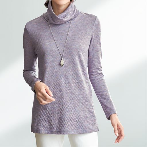 注目のグッズがお手ごろに購入できる情報です。     【ご注文が初めての方or5,000円(税別)以上のご注文で送料無料】2枚の生地を貼り合わせて空気の層をつくった接結素材。表はウール混で暖かく、裏は綿素材で快適な肌ざわり。ひねりのあるオフタートルがやさしい印象。チュニック丈で気になるヒップまでカバー。 ■カラー:ラベンダー ■サイズ:4L,S,3L,LL,L,M
