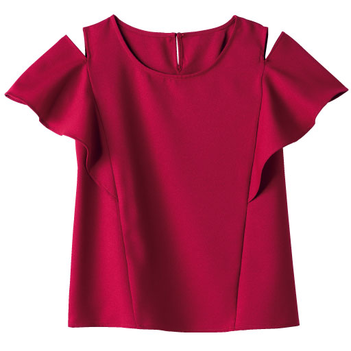注目のグッズがお手ごろに購入できる情報です。     【ご注文が初めての方or5,000円(税別)以上のご注文で送料無料】さりげない肩の開きで、大人に着られるオープンショルダーブラウス。甘さを盛ったフリル袖も今っぽい。素材は表面感のあるジョーゼット。 ■カラー:ダークレッド ■サイズ:9号,11号,13号