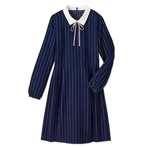 注目のグッズがお手ごろに購入できる情報です。     【ご注文が初めての方or5,000円(税別)以上のご注文で送料無料】衿付でクラシカルなムードのストライプ柄ワンピース。少しふんわりしたパフスリーブ&フレアシルエットが女の子らしい。ベロアリボンを取り外せばすっきり大人っぽく着こなせちゃうよ♪ ■カラー:ネイビー ■サイズ:M,L,S,LL