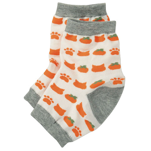 注目のグッズがお手ごろに購入できる情報です。     【ご注文が初めての方or5,000円(税別)以上のご注文で送料無料】かかとの内側に施したシリコン加工による発汗作用で、しっとり足ケア。はくだけでかかとケアができるフットケアソックスです。可愛いネコと柿のコラボ柄、ストライブ柄の2柄から選べます。かかと乾燥、かかとひび割れしやすい足のナイトケアに。 ■カラー:A ■サイズ:フリー