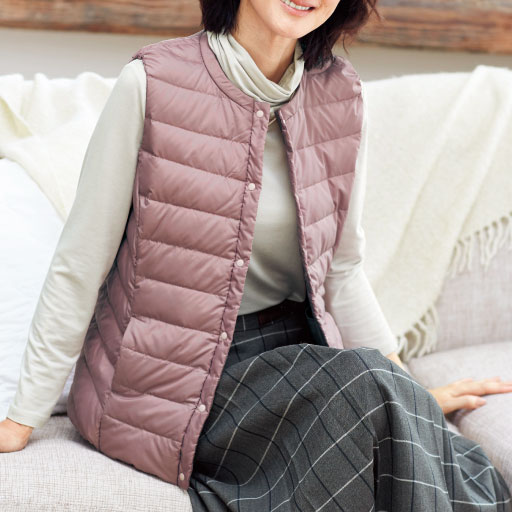 注目のグッズがお手ごろに購入できる情報です。     【ご注文が初めての方or5,000円(税別)以上のご注文で送料無料】外でもお家でも大活躍! 厳冬にはコートの下に重ねてインナーダウンとしても着用できます。腕まわりがもたつかず、動きやすいラクな着心地です。携帯に便利な収納袋付きです。 ■カラー:グレイッシュピンク ■サイズ:L,M,LL,4L,3L