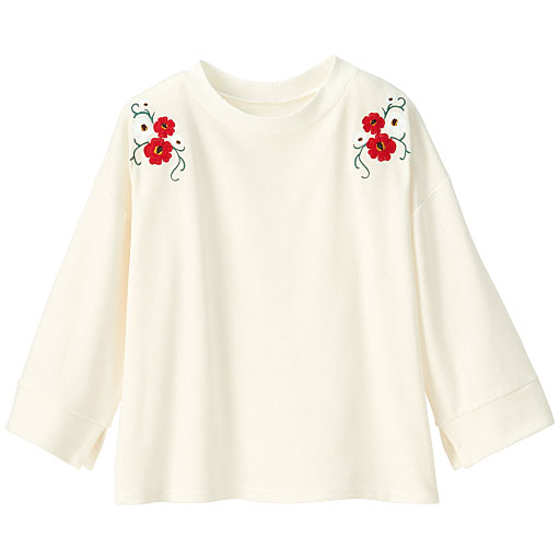 注目のグッズがお手ごろに購入できる情報です。     【ご注文が初めての方or5,000円(税別)以上のご注文で送料無料】ヨーク部分に施した花モチーフ刺しゅうが程よくフェミニンで華やかムード。少し広がった袖口に入ったスリットにも注目。刺しゅう入りアイテムは今季おさえておきたい旬の1枚だよ♪ ■カラー:オフホワイト ■サイズ:L,S,LL,M