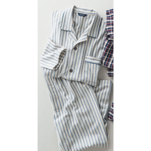 注目のグッズがお手ごろに購入できる情報です。     【ご注文が初めての方or5,000円(税別)以上のご注文で送料無料】豊かな表情を織りなす兵庫県の播州織りを採用。播州織りはビジネスシャツなどにも使われる日本での布帛生地の一大産地。そんな播州織りで品格ある紳士パジャマの王道を作成しました。美しい光沢と耐久性を併せ持つ、上質感漂うカルゼ織のパジャマです。快適に着られる綿100%素材。先染めした美しい染め色が、表情豊かで深い味わいを醸し出します。肌側の微起毛の柔らかな肌ざわりも魅力。ストライプとチェックの計4柄から選べます。クラスを感じさせる日本製。 ■カラー:ストライプB ■サイズ:LL,M,L