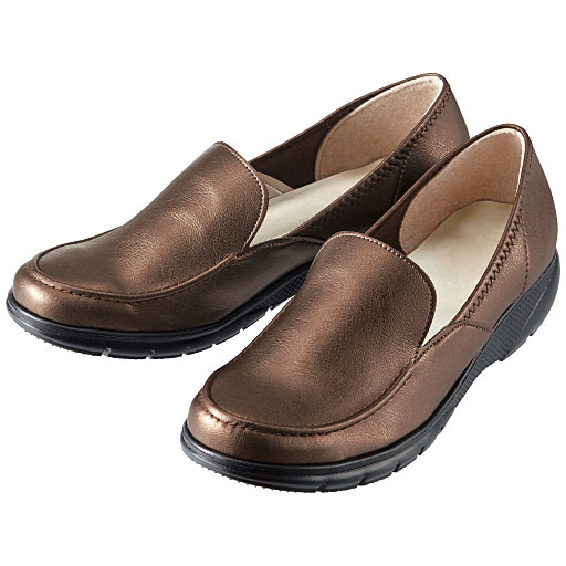 注目のグッズがお手ごろに購入できる情報です。     【送料無料】この軽さこの柔らかさもう以前の靴には戻れない。大人気の軽量ウォーキングシューズのベーシックなローファータイプ!【弾むように軽やかな歩行に導く10の機能】(1)なんと約104gの圧倒的な軽さ!(22cm片足)(2)ストレッチ素材が甲全体を包み込み、足の凹凸・動きにフィット。(3)足入れ部が伸び、幅広・甲高さんにもオススメ。(4)かかとズレサポートパッドでフィット感UP。(5)裸足感覚で履ける驚きの屈曲性。足の動きを妨げず快適。(6)超軽量のEVAアウトソール。足運びや足上がりのラクさを実感。 ■カラー:ブロンズ ■サイズ:24.5cm,23.0cm,22.5cm