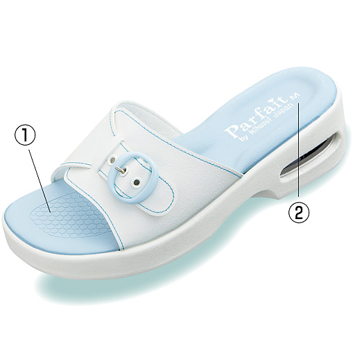 注目のグッズがお手ごろに購入できる情報です。     【ご注文が初めての方or5,000円(税別)以上のご注文で送料無料】脱ぎ履きしやすいスリッパタイプの日本製ナースサンダル。甲のベルト調整で足に合わせて調整できます。ソールはエア入りで足への衝撃を軽減し、耐久性にも優れています。 ■カラー:サックス ■サイズ:M(22.5-23cm),LL(24-24.5cm),L(23.5-24cm)