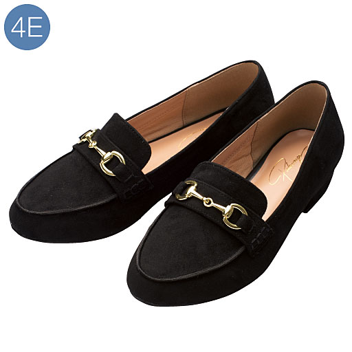 注目のグッズがお手ごろに購入できる情報です。     【ご注文が初めての方or5,000円(税別)以上のご注文で送料無料】なめらかなフェイクスエード素材のローファー。甲にはゴールドのビットモチーフでハンサムな雰囲気。-plump-(プランプ)-ふっくらサイズのおしゃれ服専門ブランド、『plump(プランプ)』。すっきりきれいに見えるデザインと、着心地のよさが自慢のアイテム満載!身につけたときの「あ、これいい!」をぜひ体験してください♪ ■カラー:ブラック ■サイズ:25.5cm,23.5cm,24cm,24.5cm,25cm,26cm
